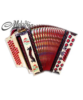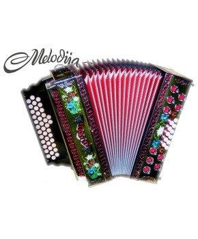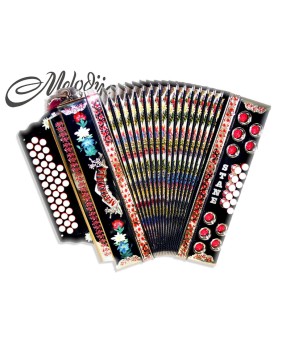 4.990,00 €Unikatna poslikava harmonike po želji kupca. Poslikava je ročno pobarvana. V harmoniki so vgrajene glasilke A mano, ki bodo zadovoljile tudi najbolj zahtevnega harmonikarja. Z natančno izdelavo in kvalitetnim materialom, zagotavljajo občutno razliko v zvoku. So hitro odzivne, glasnejše in porabijo manj zraka. Triglasna uglasitev. Pri uglasitvi se prilagodimo želji stranke Mehaniki in lahkotnemu igranju smo posvetili veliko pozornosti. Les je slovenski, skrbno izbran. Strokovno sušen in kakovostno obdelan. Diskantna mehanika je iz aluminija in dvakrat uležajena, kar pripomore k ničelni zračnosti.Mehanika je izredno lahka za igranje. Bas mehanika je večkratno uležajena, galvansko obdelana, ter zelo lahka za igranje. Meh je iz lepenke, ovčje kože in okrasnega papirja. Odlikuje ga lahko igranje in dolga življenjska doba. Pri izdelavi harmonike se še vedno ohranja tradicija ročnega dela. Izdelano v podjetju Melodija Mengeš.