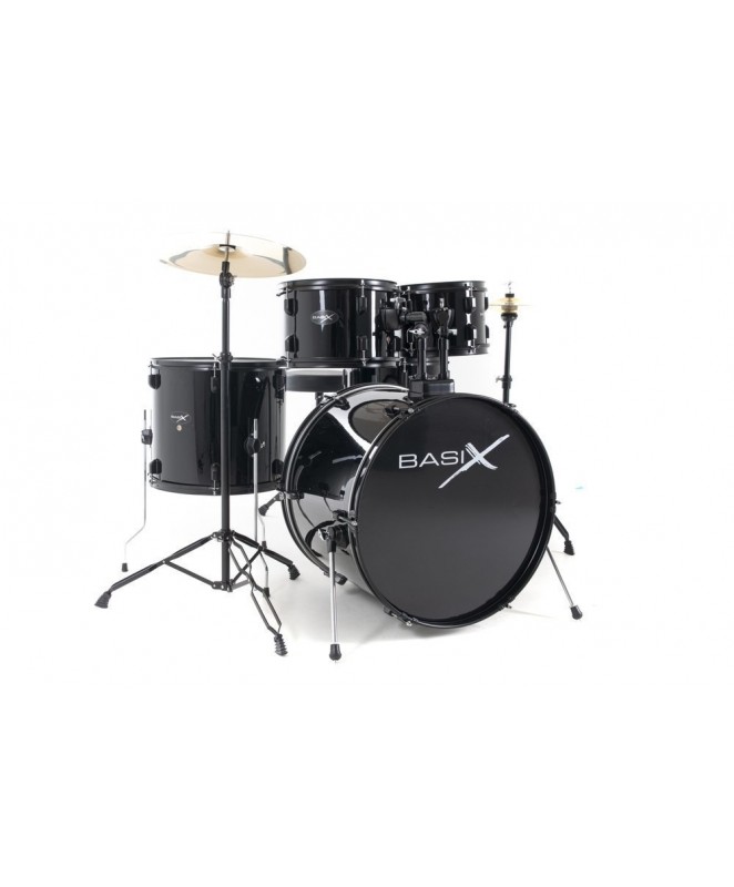 sestavljen iz: stojala za snare, činele in hi hat ter pedala in stolčka