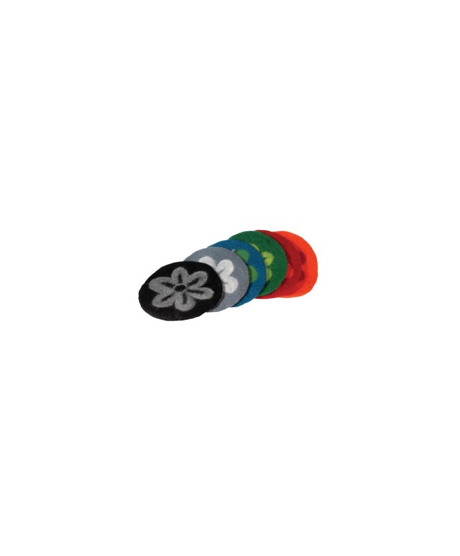 Ročno izdelana volnena podloga s cvetličnim motivom za zvočne sklede. Volneni filc je še posebej primeren zaradi svoje odpornosti proti drsenju. (na voljo v oranžni, modri, zeleni, rdeči in črni)
