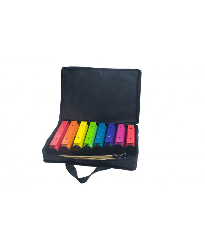 8 okroglih zvočnih cevi, c2-c3, barve prilagojene Boomwhackers®, 8 udarjalk z gumijasto glavo in najlonska torba.