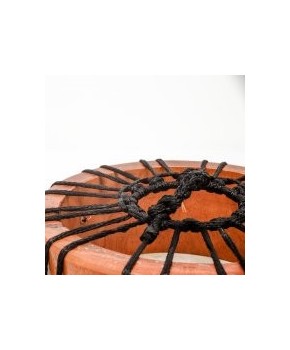 Ročni boben iz mahagonijeve vezane plošče oblečene v kozjo kožo, plastična vrvica, 22cm