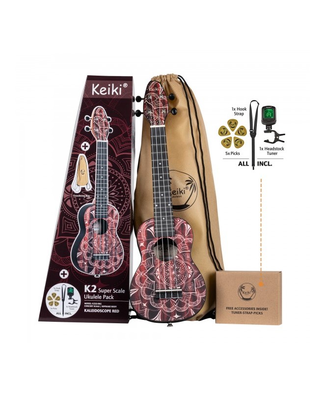 Ukulele KEIKI K2 serija Superscale Soprano set - Rdeči kalejdoskop K2SS-RKC