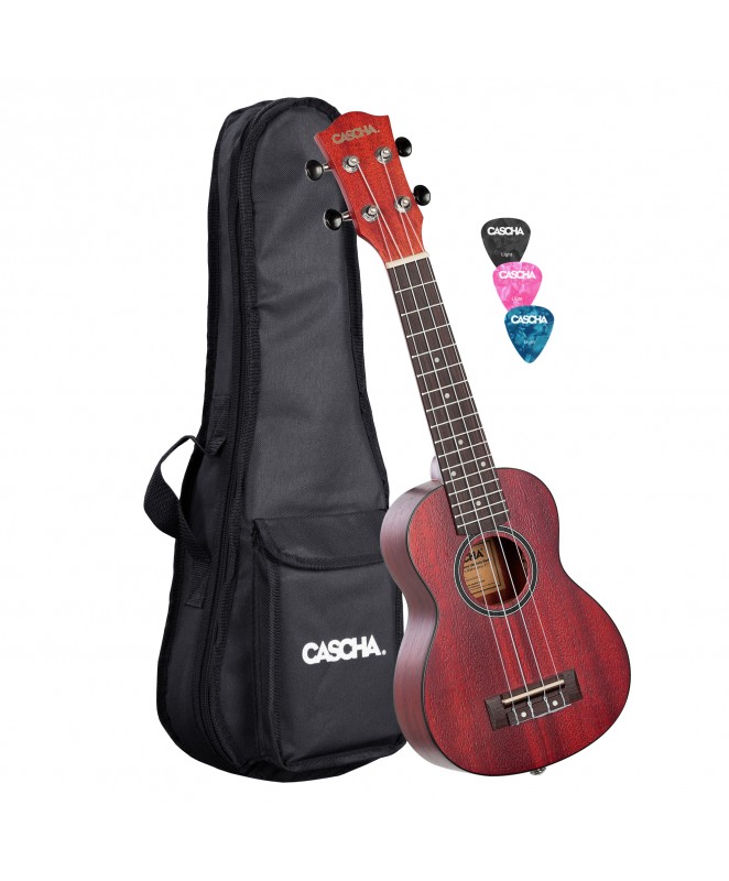 Sopran ukulele Premium Mahagonij rdeč za LEVIČARJE(s torbo in trzalicami) HH 2263L