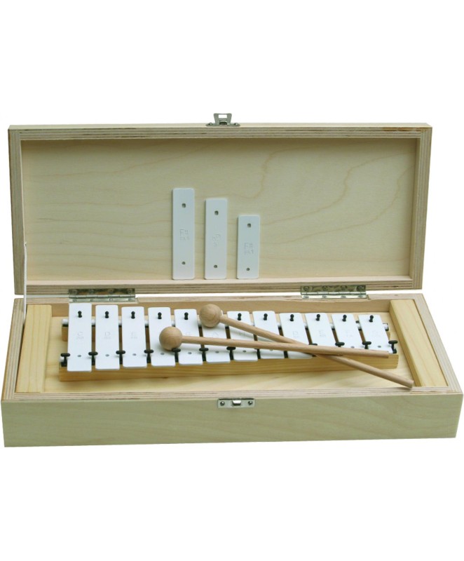 12 belih zvočnih plošč, diatonično, c3 – g4, osnovna plošča iz vezanega lesa, okvir iz smreke, s fis3, bb3 in fis4. V leseni škatli, za boljše shranjevanje in kot trdna podlaga, 2 udarjalki. Brez maloprodajne škatle.
